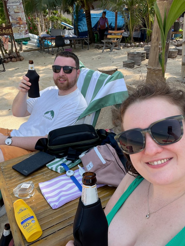 As we had arrived so early we hung out with our bags on the beach for a few hours, playing some card games and eventually getting some food and an obligatory Chang for lunch!