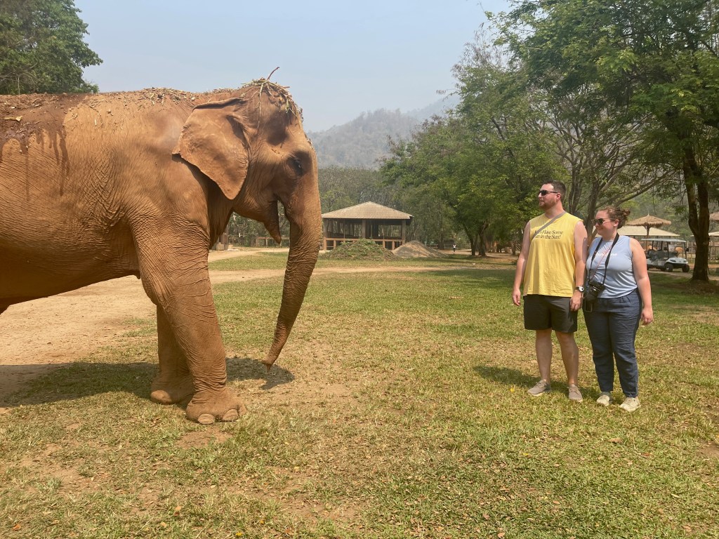 Our morning at Elephant Nature Park has definitely been one of the highlights of our trip so far. Chiang Mai is one of the places in Thailand that has a lot of elephant sanctuaries but you really do have to be careful when choosing where to go to ensure that it is ethical and actually a sanctuary, not a riding camp or other park that prioritises visitors over the happiness of the elephants. We did a lot of research before deciding to go with Elephant Nature Park, as their tours are completely hands off, and only involve observing the elephants in their habitat. They picked us up from our hotel, and on the way we were surprised to drive past riding camps with tourists riding elephants. With the knowledge we have now about the cruel methods used to “train” these creatures, we found it hard to understand why people would pay to ride on an elephant.