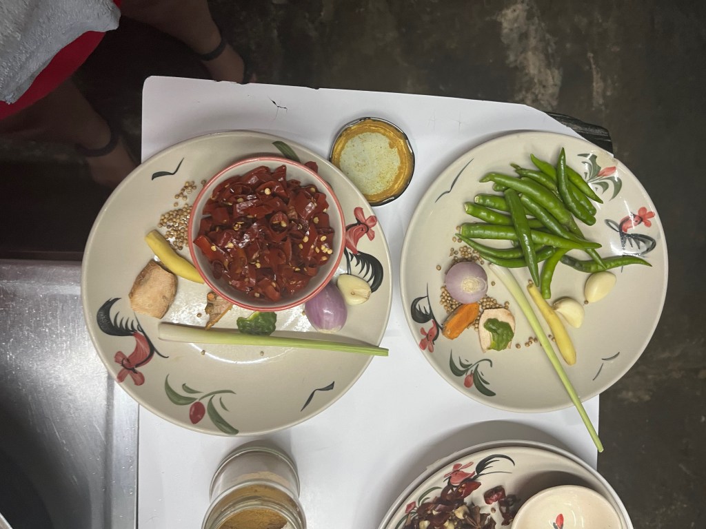 After this sufficient sustenance, the serious cooking could start. We were spilt into small groups to make up the various curry pastes we would need; red, green and massaman. All of the ingredients get crushed together with a pestle and mortar, which I’m telling you is hard work! But it’s worth it for those aromatic flavours!