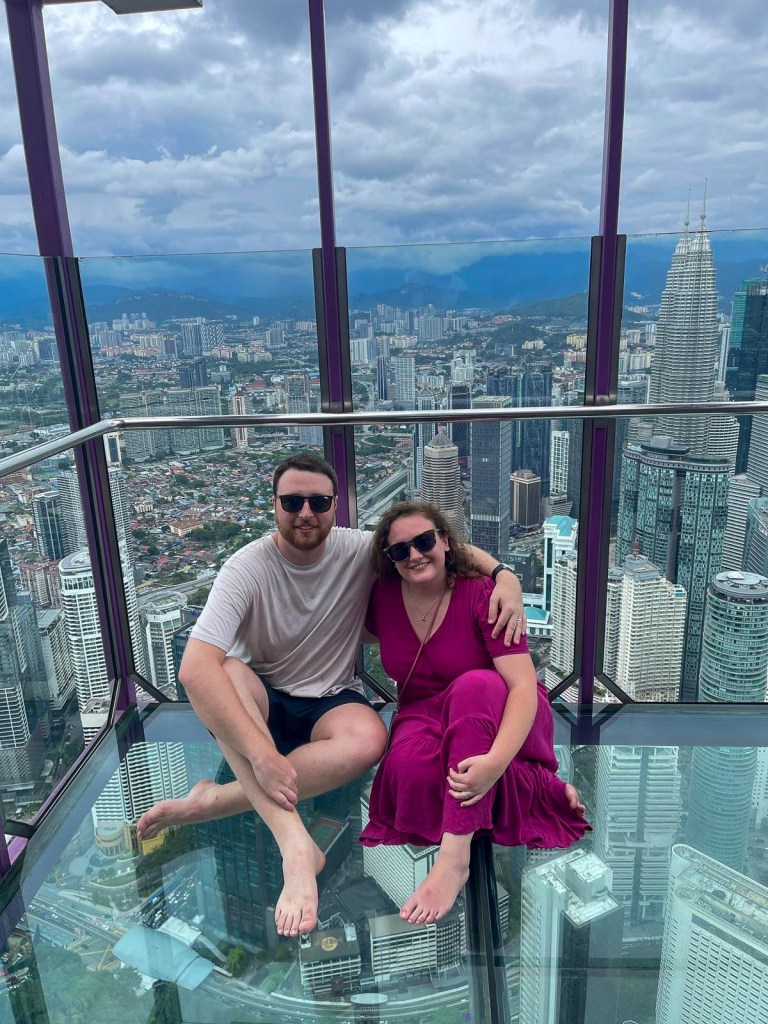 The next day we headed to KL Tower. We had bought tickets for the Sky Deck online, but when we got there we were told it was closed because of the weather. It wasn’t raining but apparently it was going to so we couldn’t go up. We asked if we could use our ticket to do the indoor observation deck instead but apparently that wasn’t possible. So, we weren’t really too sure what to do except hang around and hope they would open if the rain never came. We walked around the entrance for about 10 minutes and went back to ask when they would know if they were going to open and much to our delight in that time they had decided to open the Sky Deck so we headed straight up. There, we took in the 360 degree view of the city and walked out into the glass skyboxes. Ryan was very impressed with my fearlessness, as was I if I’m honest. I think the fact that you only got 45 seconds in each put me under enough pressure to just do it without thinking too much!